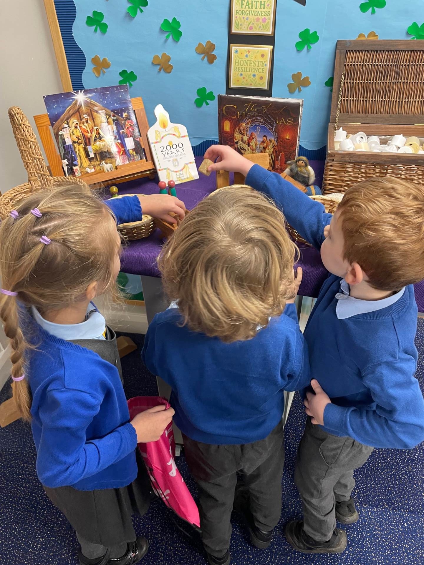 Every class makes their own Advent Wreath as a symbol of the four precious weeks of Advent. Wreaths are round to show that God has no beginning or end; the evergreen foliage represent God's never-ending love. Can your child remember why the candles are different colours?