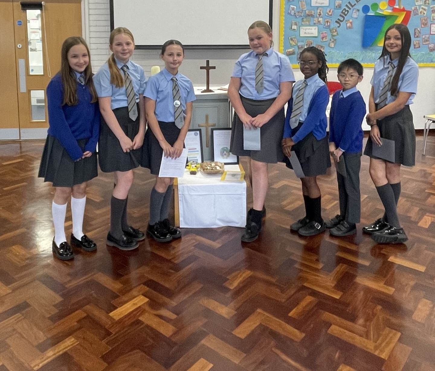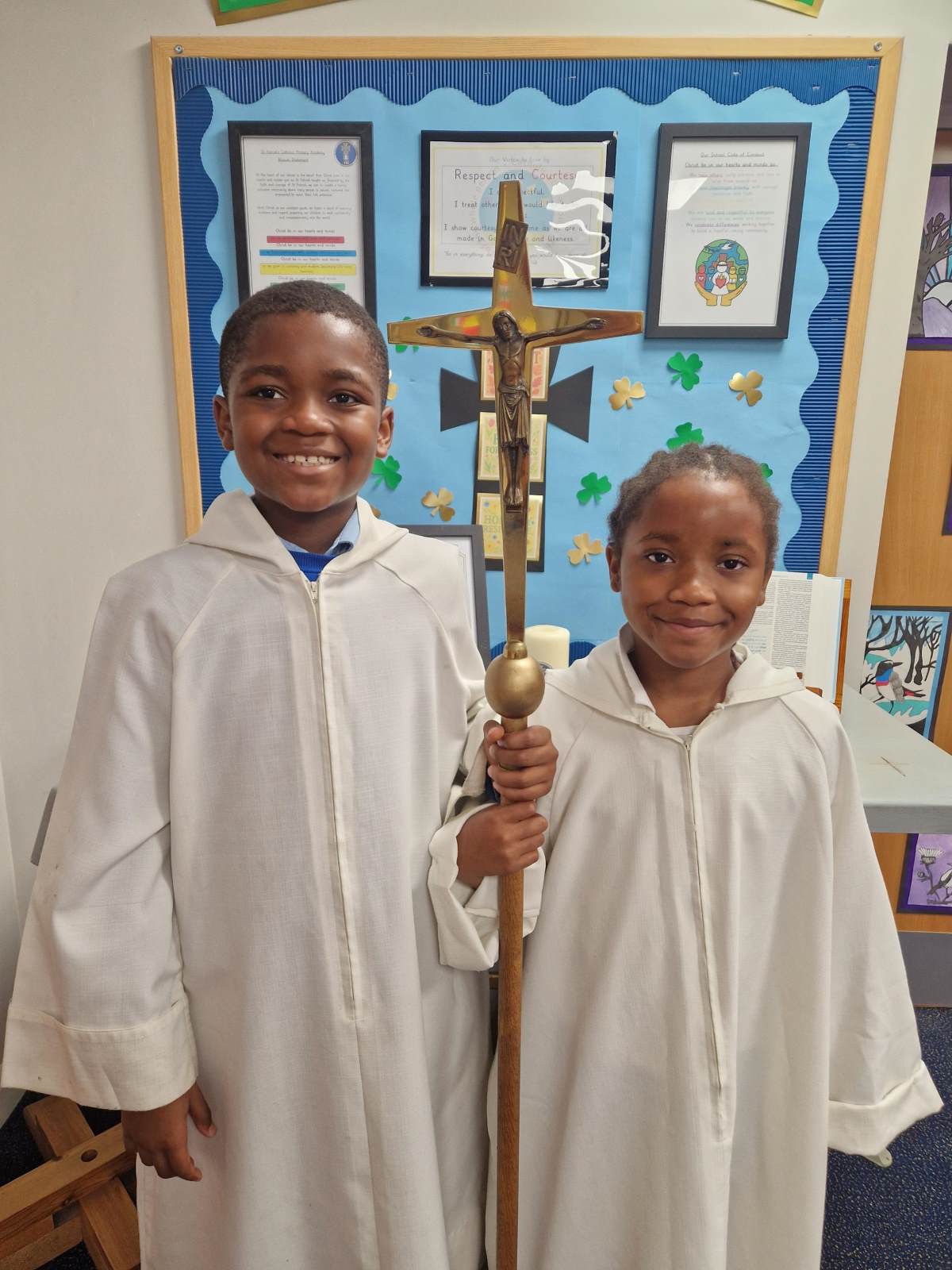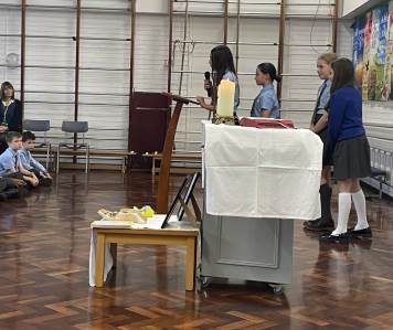 As part of their liturgical formation, our Year 6 children take an active role by presenting the school banner, preparing the offertory gifts, and proclaiming the readings. Those children who serve at Mass, help with parts of the preparation.