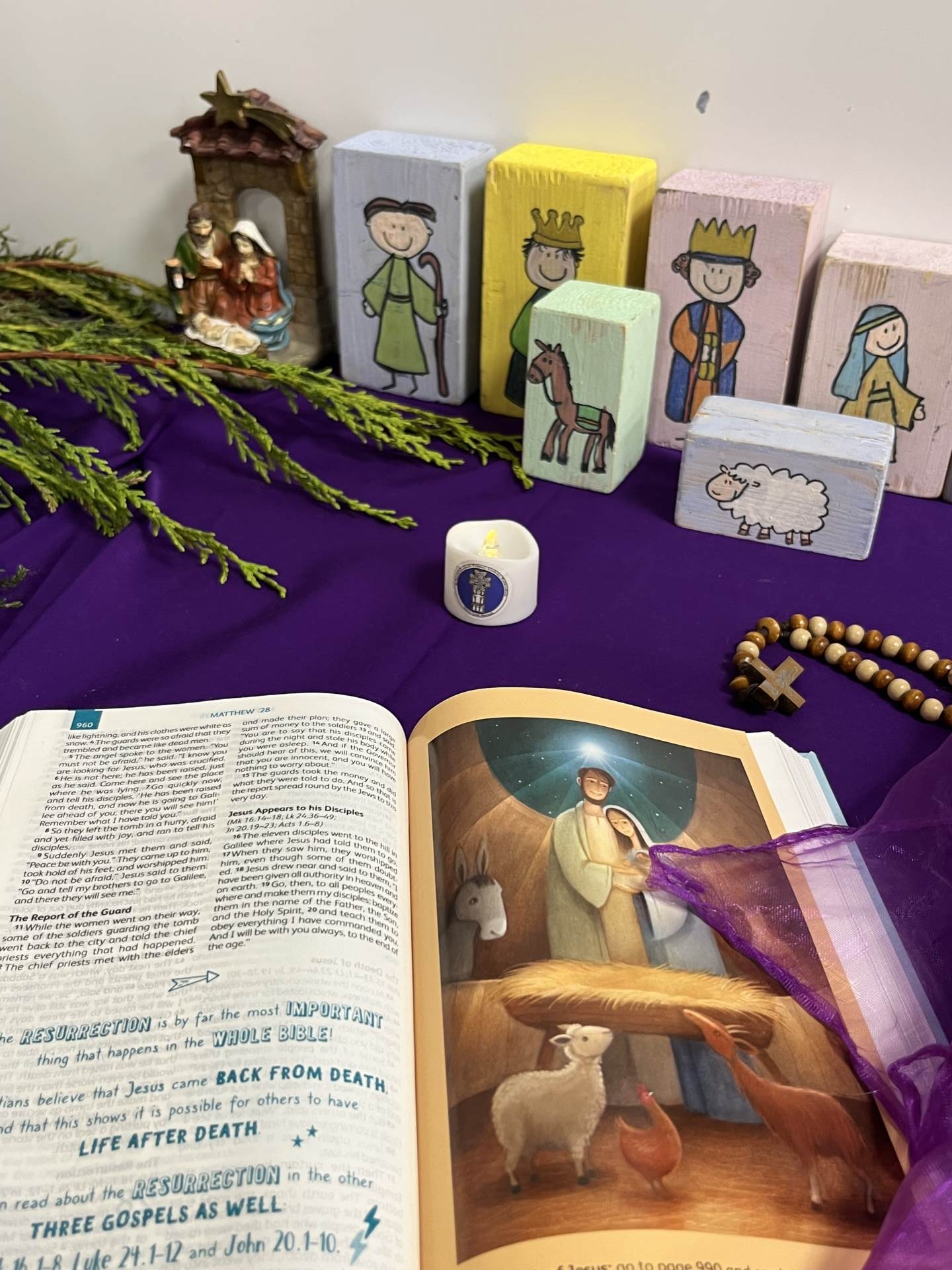 Every class makes their own Advent Wreath as a symbol of the four precious weeks of Advent. Wreaths are round to show that God has no beginning or end; the evergreen foliage represent God's never-ending love. Can your child remember why the candles are different colours?